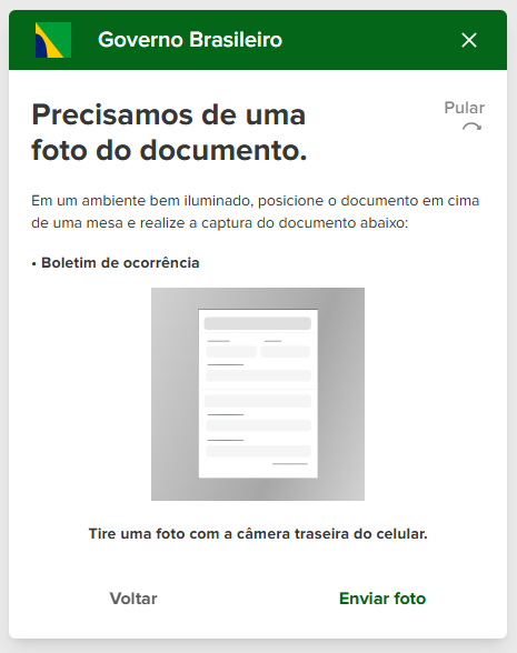 , é usada para apresentar um documento necessário para o atendimento. Para a realização dessa captura:
