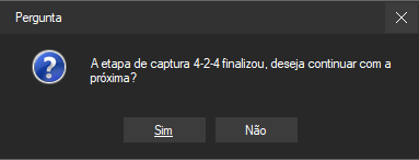 5. Ao concluir a captura 4-2-4 será mostrada na tela uma mensagem referente a continuação do fluxo de capturas. Clique em “Sim” e continue com o próximo tipo de captura: